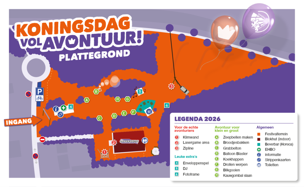 We zijn tijdens Koningsdag de hele dag goed te bereiken via de chat van Instagram en Facebook. Uiteraard kun je ook bij het info punt bij de ingang van het terrein terecht met al je vragen.